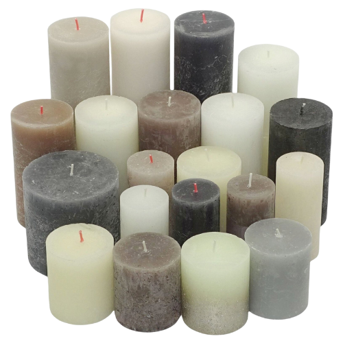 Tauche ein in ein Ambiente, das nur qualitativ hochwertige Stumpenkerzen in rustikaler Optik schaffen können. Jede dieser Kerzen ist ein Kunstwerk für sich, und in diesem Paket findest du eine faszinierende Vielfalt von Farben und Designs.
