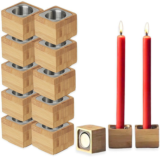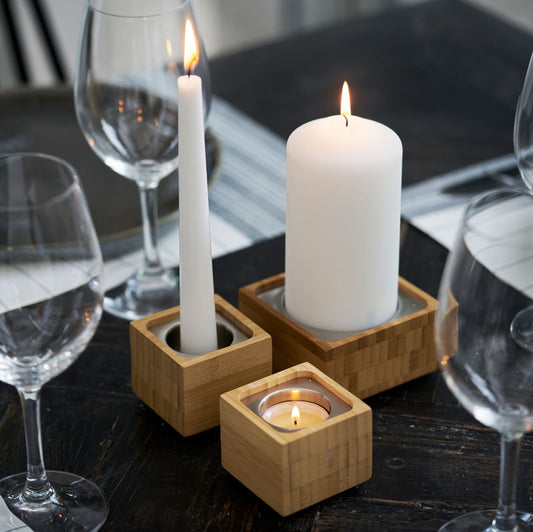 6 Stk Duni Kerzenhalter 3in1 Bambus 95x50mm für Stumpenkerzen Kerzenständer - Natur