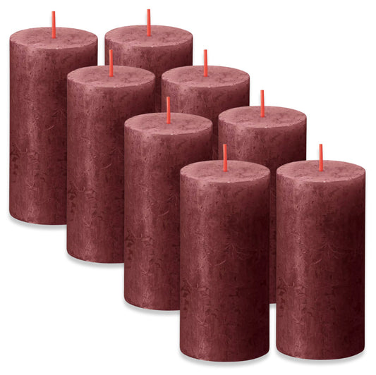 8er Set Bolsius Rustik Stumpenkerzen 100x50mm Blockkerzen klein - Samtrot