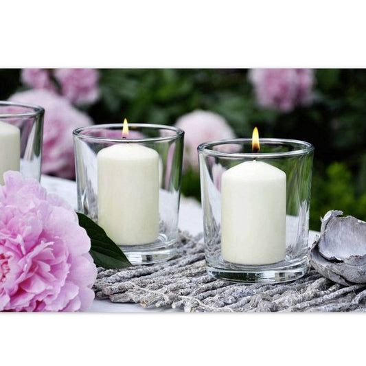 24 Müller Stumpenkerzen 62x48mm BSS-Durchbrandsperre - Elfenbein (6x4er)