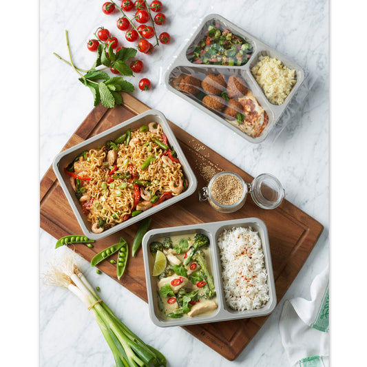 300 Stk Menüschalen 1200ml Mikrowellenschalen 225x175x43mm ungeteilt - grau