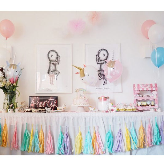 3m Girlande 24 Tasseln Quasten Papierstreifen Fransen Banner Mix bunt