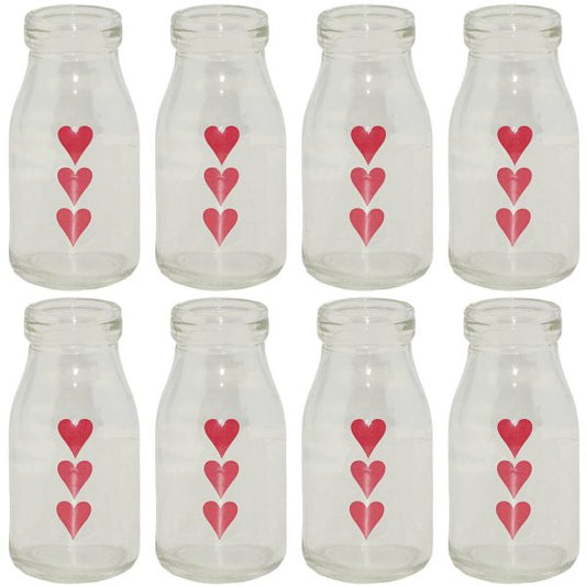 20 Stk Mini Party Gläser Milch-Flaschen 220ml Saftflasche Vase Trinkglas Herz