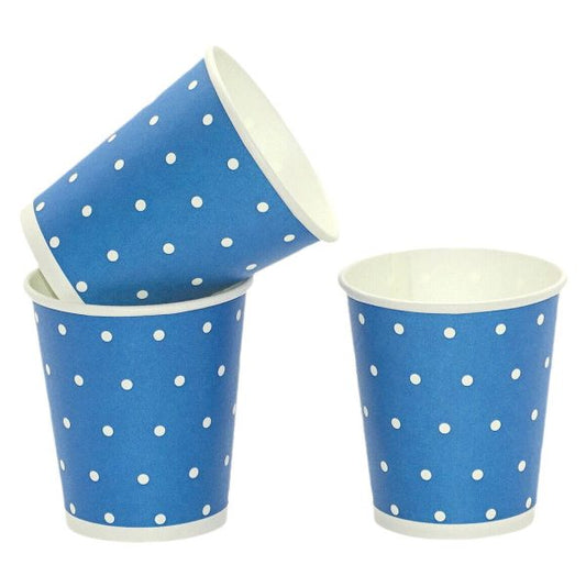 320 Pappbecher 0,2L Trinkbecher - Punkte blau-weiß (32 Pack x10er)