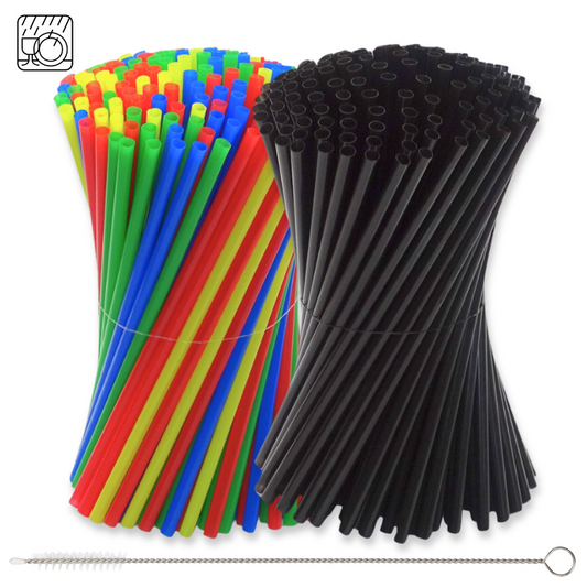 1.000 Stk Jumbo Mehrweg Trinkhalme 240x8mm Plastik Strohhalme + Bürste wiederverwendbar (2x500er)