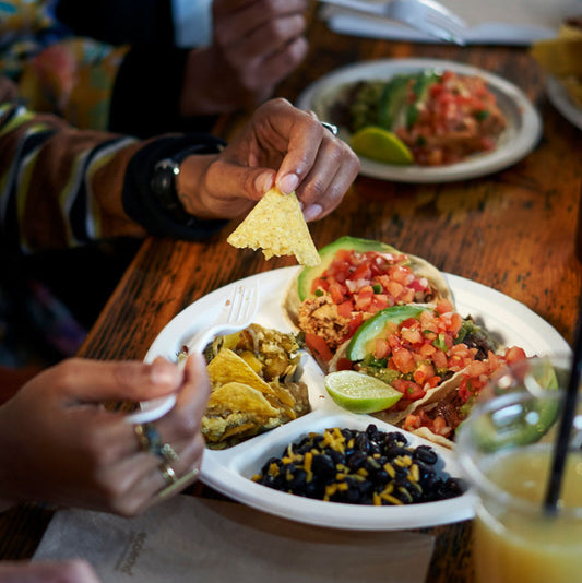Bio Einweg-Teller Ø 26cm Menüteller 3-geteilt Bagasse - weiß