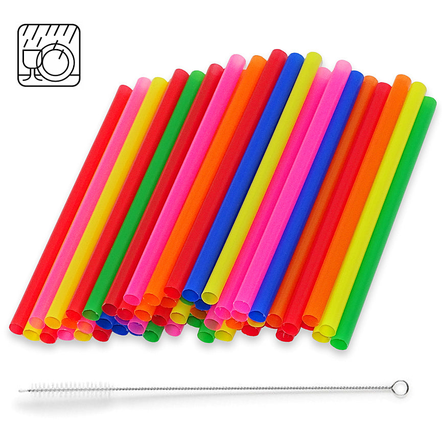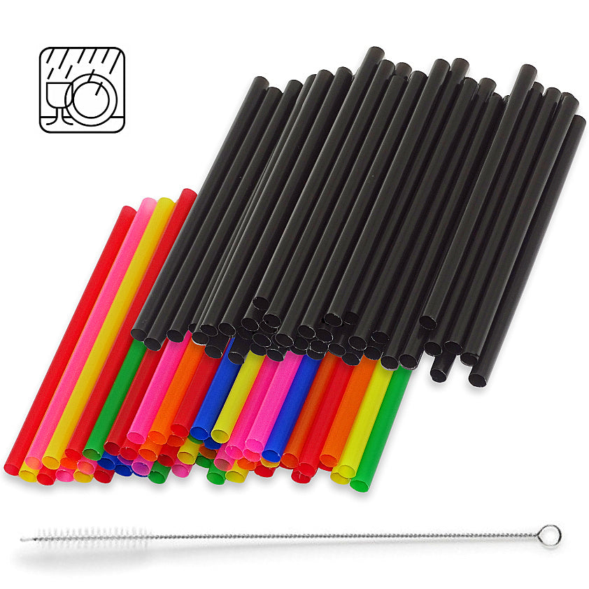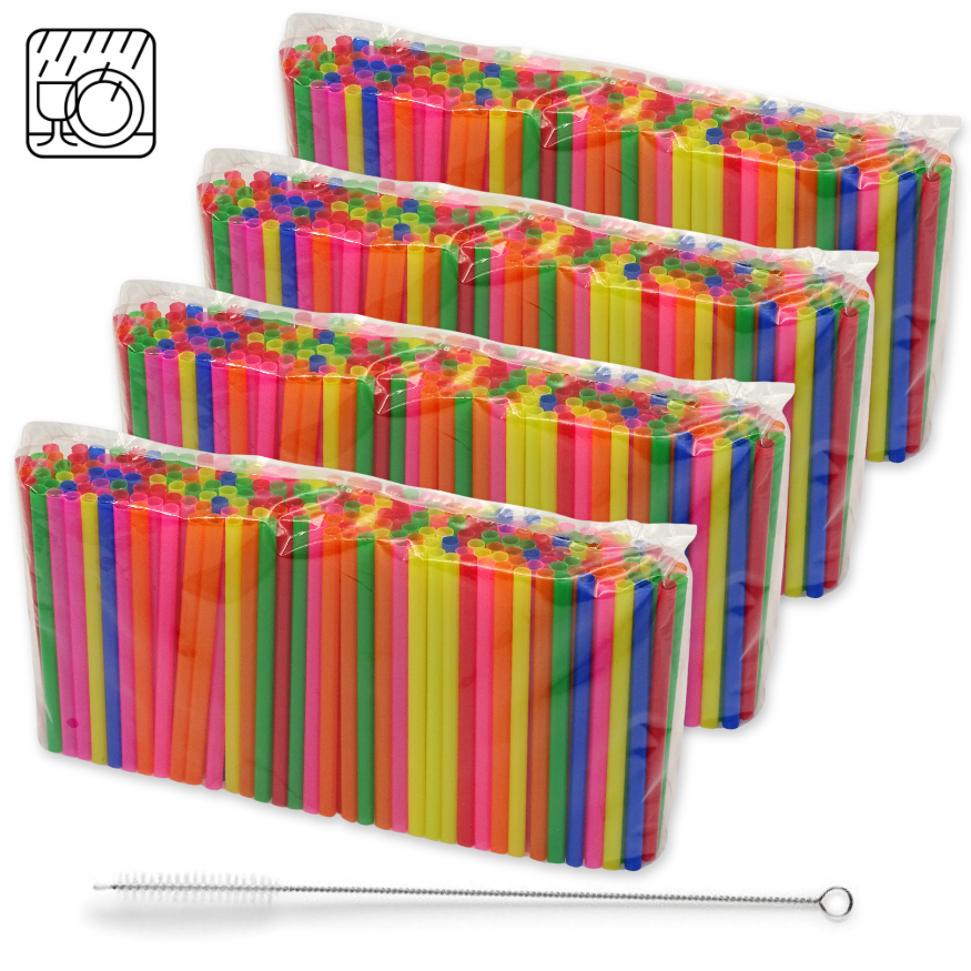 1.000 Stk Cocktail Mehrweg Trinkhalme Plastik 150x8mm Strohhalme + Bürste wiederverwendbar (4x250er)