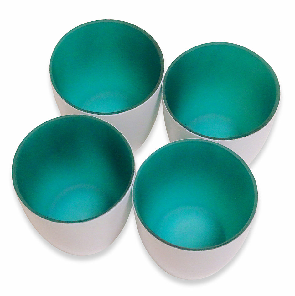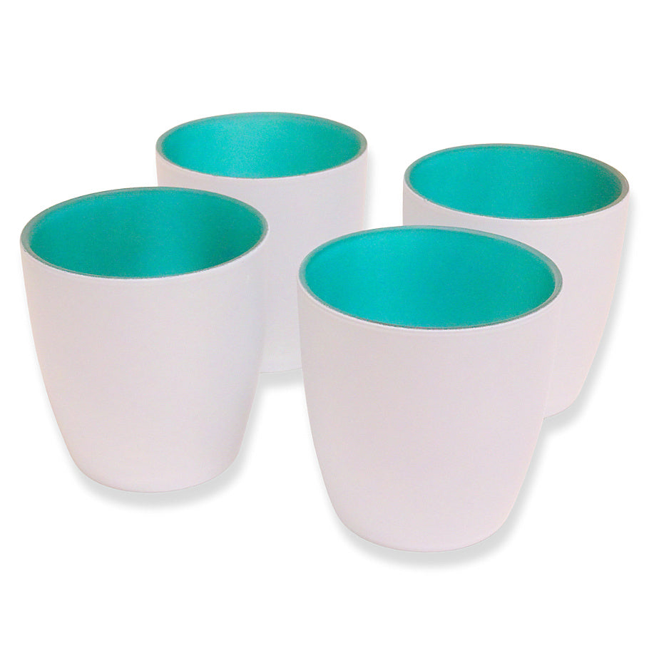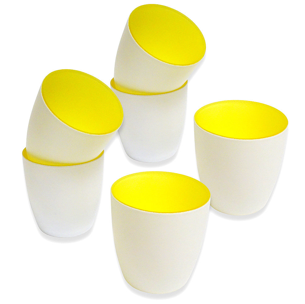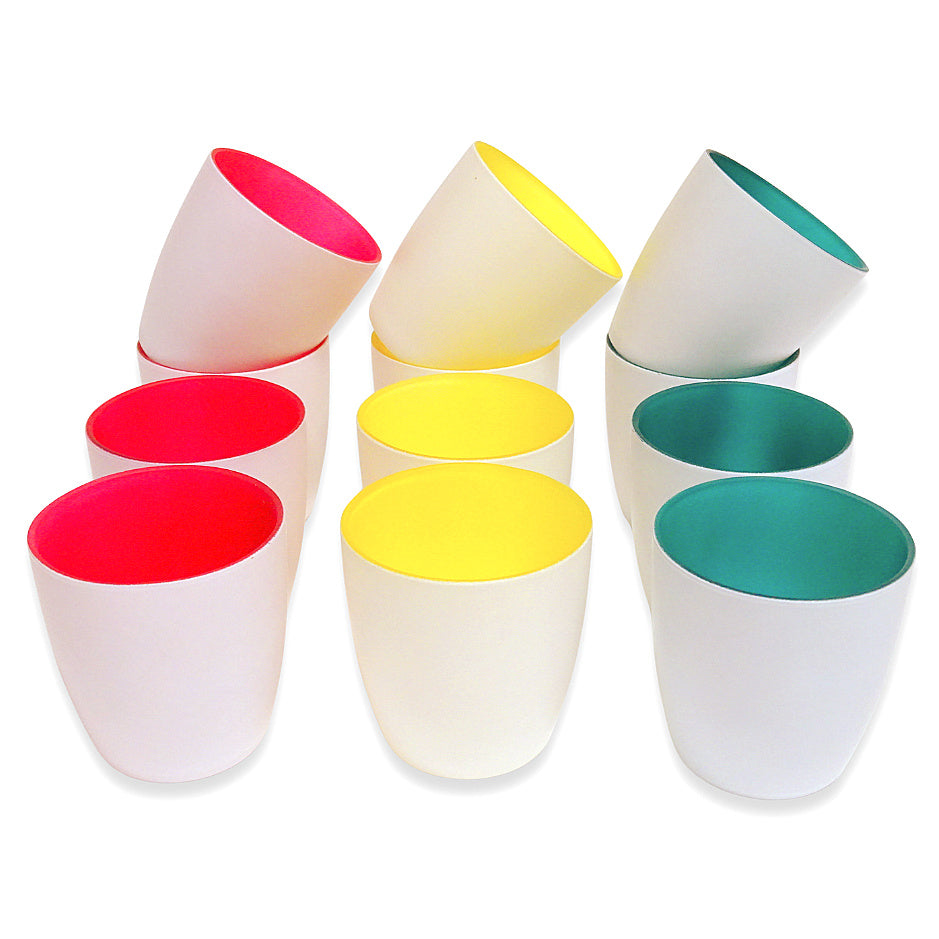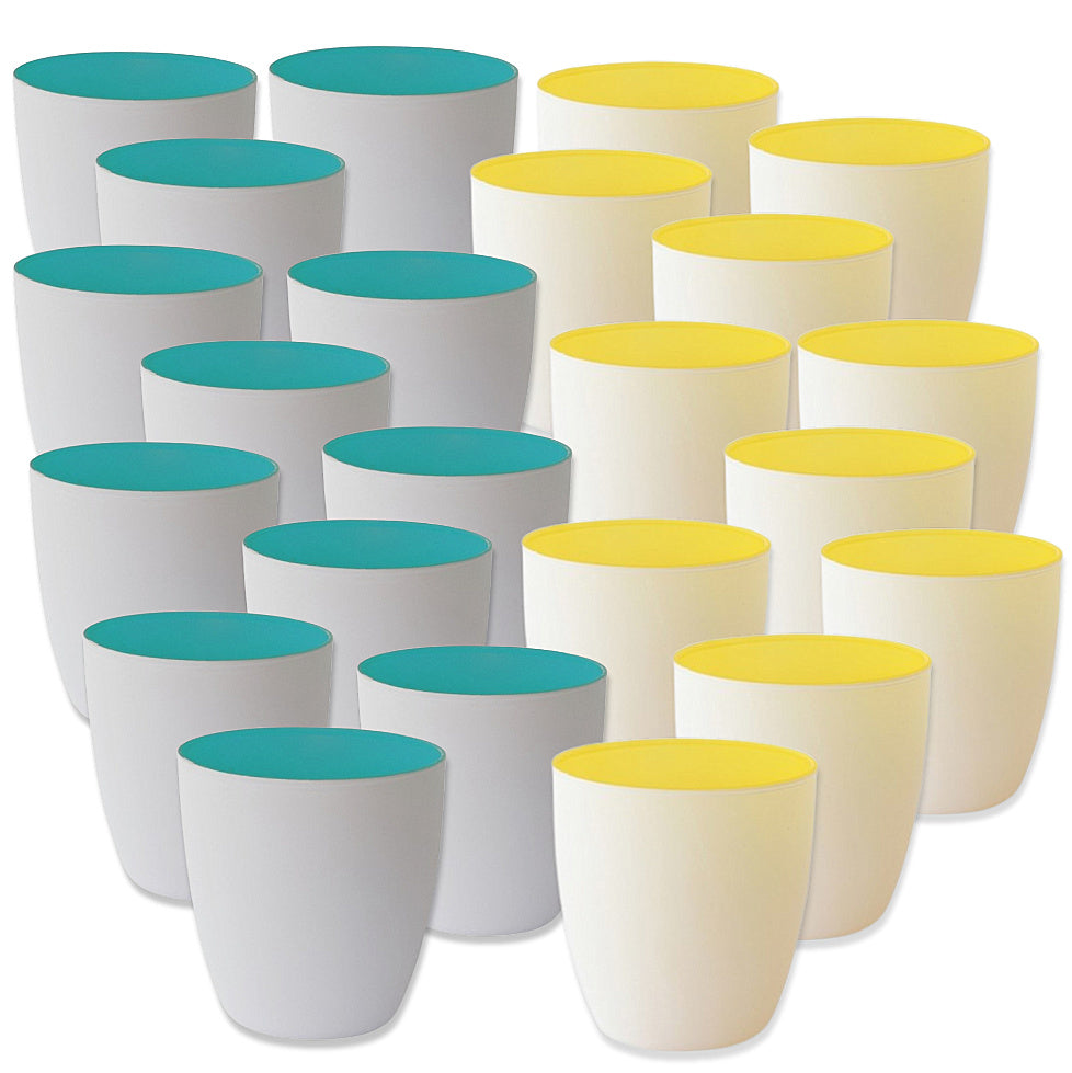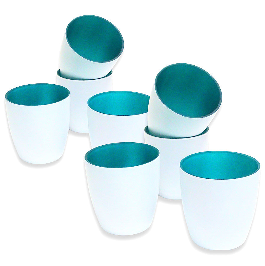 Kerzenglas mit farbiger Innenseite, außen weiß für eine moderne Tischdekoration mit Stil.