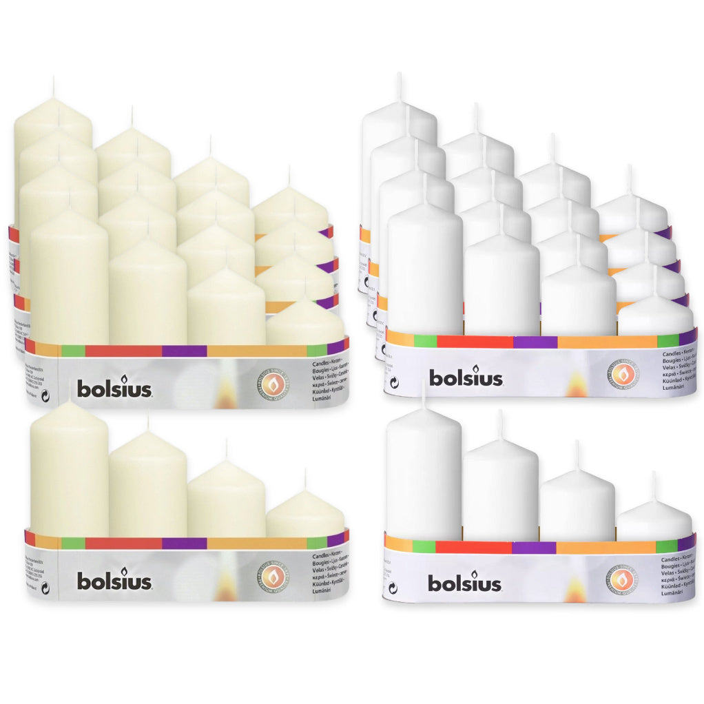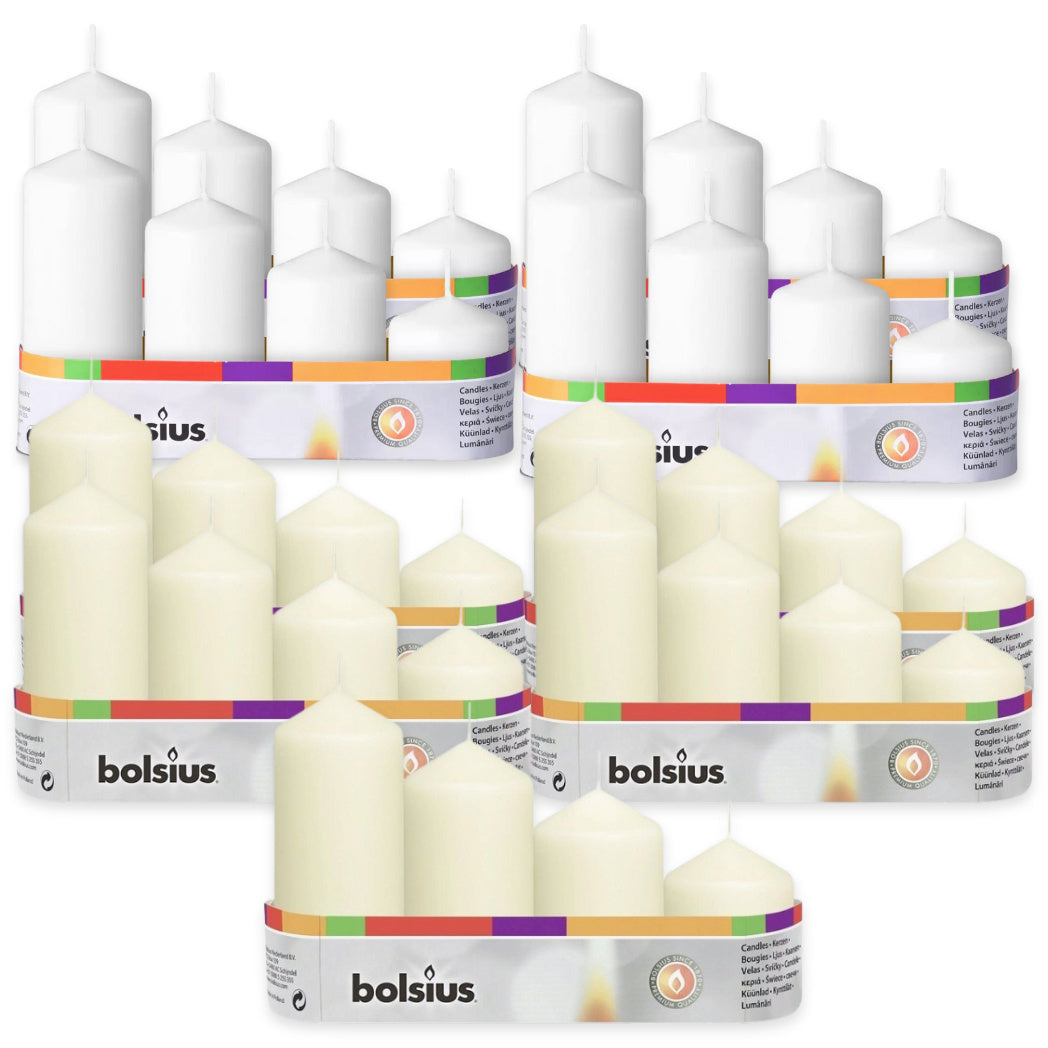 20 Stk (5 x 4er) Bolsius Stumpenkerzen 12/10/8/6 cm Ø 4,8 cm Advent Kerzen abgestuft glatt