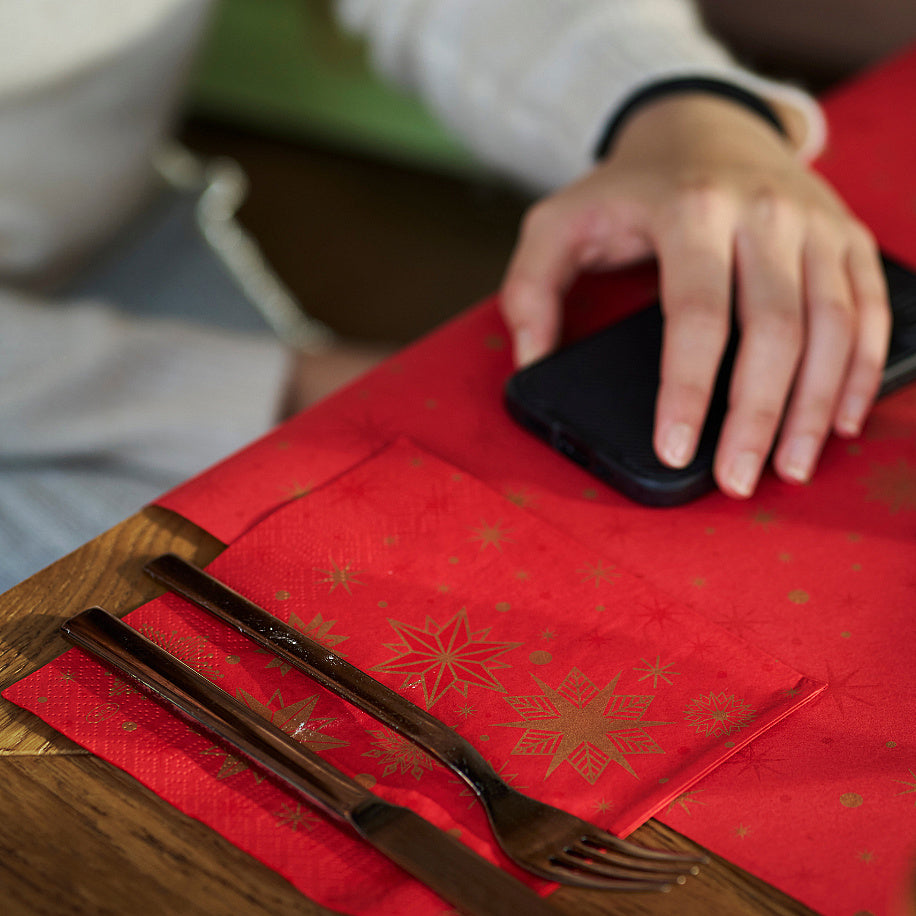 24 Meter Tischläufer 40cm breit Tischband stoffähnlich (5 Ro.x4,8m) - Star Shine Red