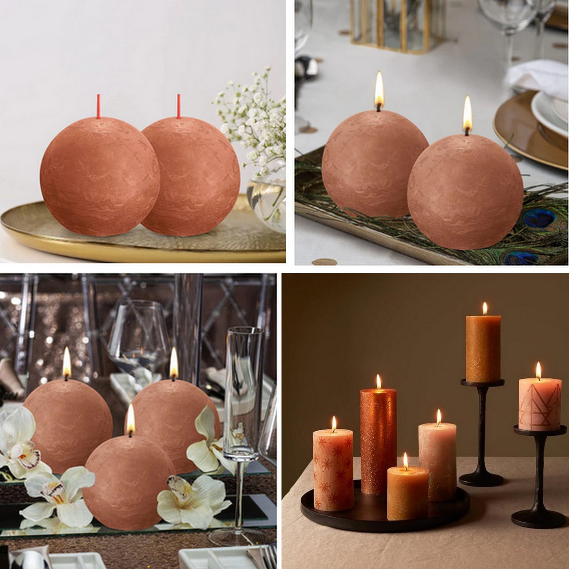 6 Bolsius Rustik Kugelkerze Ø 76mm - Rostiges Rosa (6er Pack)