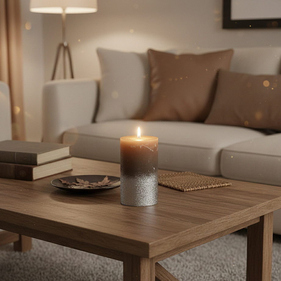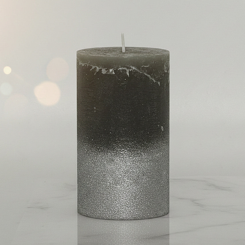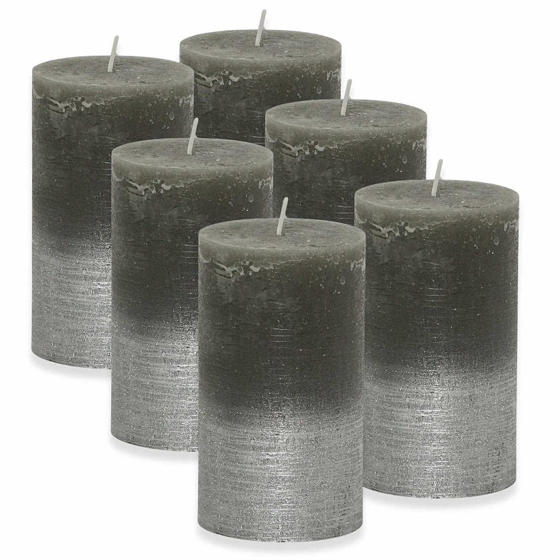 6er Set Gies Rustik Stumpenkerzen 120x68mm Blockkerzen Dunkelgrau-Silber