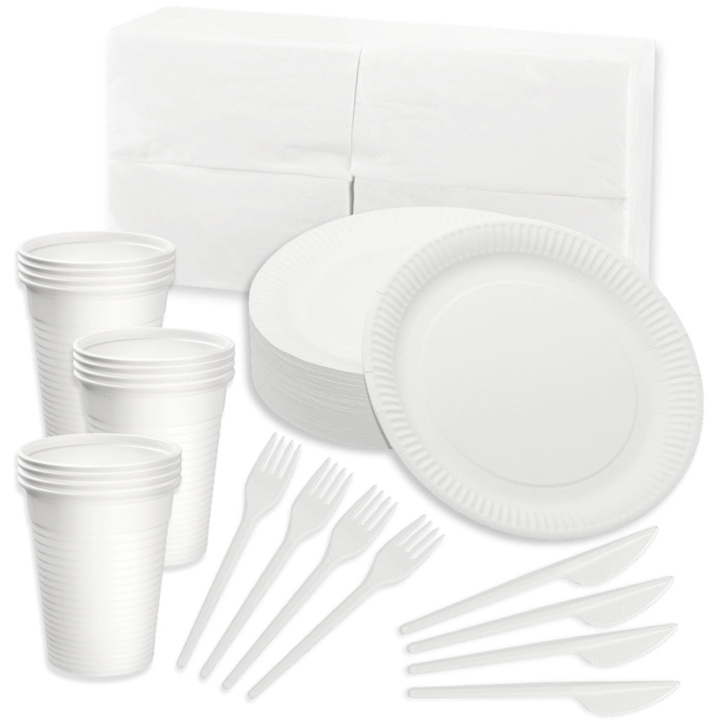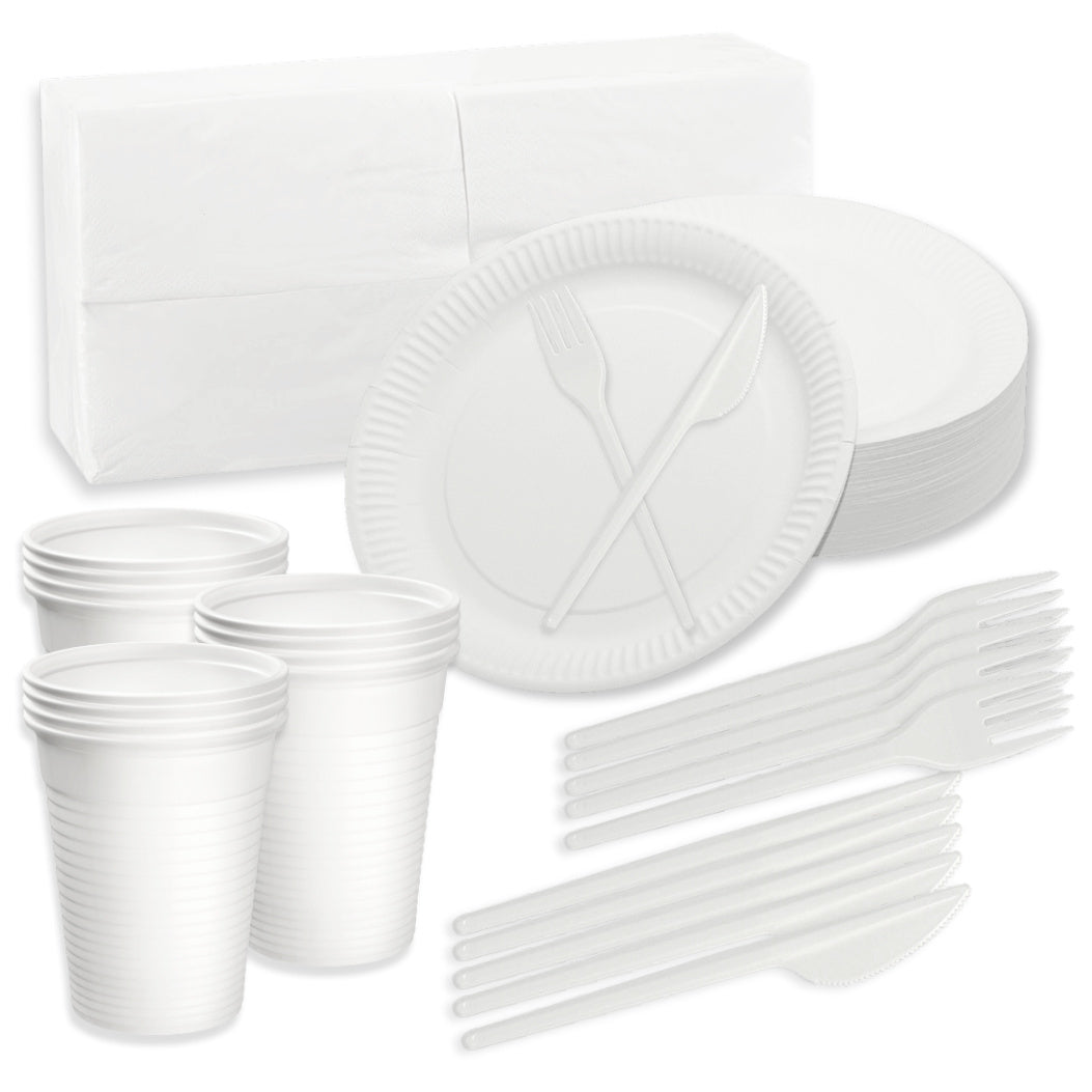 Party Set: 100 Pappteller, 100 Gabeln, 100 Messer,